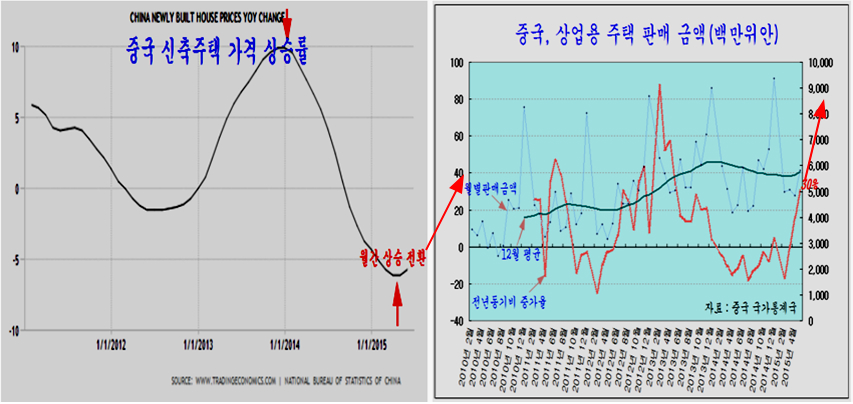 이미 중국은 20년래 최 저금리인 4.85%로 금리를 낮추고 지급준비율 인하와 금융및 거래 세제 완화로 부동산 시장에 활력을 넣고 있다. 이에 따라 주택 가격이 오르고 상업용 완성주택 판매가 급증하여 이런 추세가 주택 건설 확대로 이어지는 것은 불을 보듯 명확하다.