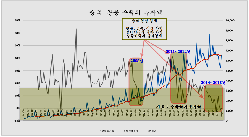 사실 작년 하반기부터 주가가 하락했던 이유는 중국의 과도한 건설 경기 위축이었다 14억에 가까운 인구를 갖는 중국은 유럽과 미국을 합한 인구 6억 7000만보다 월등히 많아 건설과 제조업 경기에 관한 한 세계 경제를 좌지우지 한다.