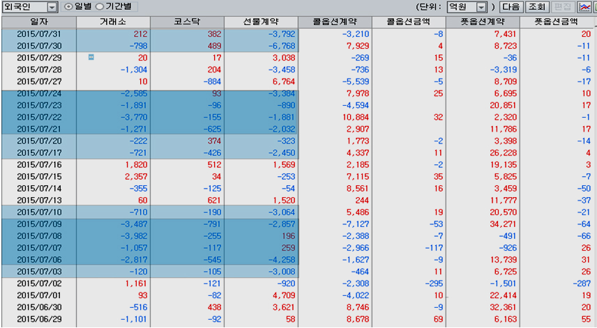 따라서, 외국인이 선물을 팔면서 하락을 유인하는 과정에서는 대형 우량주들이 실적도, 업황도, 재료도, 수급도 관계없이 하락을 하였지만, 이들이 매수의 방향을 바꾸면 반대로 대형주들이 급등을 하는 장세로 돌변하게 된다.