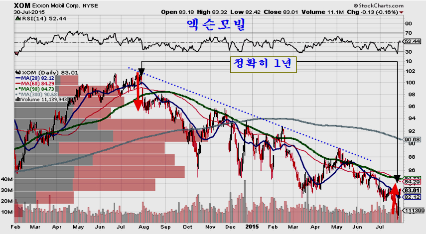 미국 시장은 이미 엑슨모빌의 주가 추세 구도로 부터 자기 상승 랠리가 준비되어 있다.