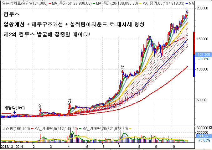 대시세를 빼놓을 수는 없다. 컴투스는 당시 대시세의 조건들을 확실히 갖춘 종목이었으며 주가 흐름도 장세