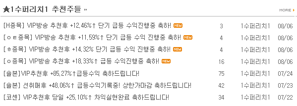 [수퍼리치 VIP방송] 최근 추천주 실적들...