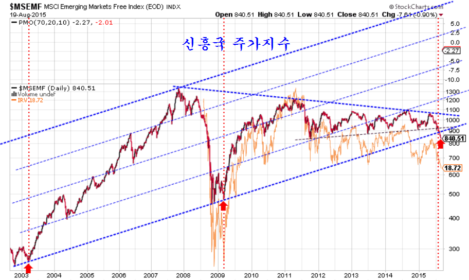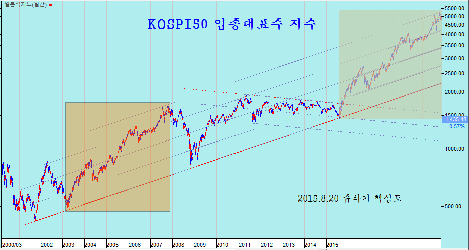예외적으로 길고 깊은 조정이기 때문에 그만큼 상승도 강하게 나타난다. 따라서 2011년 ~ 2014년에 걸친 지루한 박스권에 이어, 2014년 하반기 ~ 2015년의 하락은 길고 지루하며 투자자들이 감내하기 어려운 기간이었지만 그만큼 큰 상승을 준비하는 기간이다.