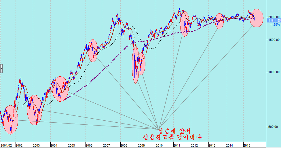 따라서 주가가 바닥이 확실하다고 신용을 늘려 주식을 사는 것이야 말로 대단히 위험하다. 주가 하락에 버티던 신용 물량이 이제 오르겠지 하고 보유하는 것 역시 위험하다. 신용 물량을 털어내는 하락은 언제 어느때 급락이 될지 모르기 때문이다. 신용으로 주식을 산 사람은 주가가 바닥일수록 신용 잔고를 줄여 반대매매를 당하지 않도록 주의할 필요가 있다. 그에 앞서 주식시장에서 실패를 하지 않으려면 절대 신용으로 투자를 하지 않는 습관이 필요하다.