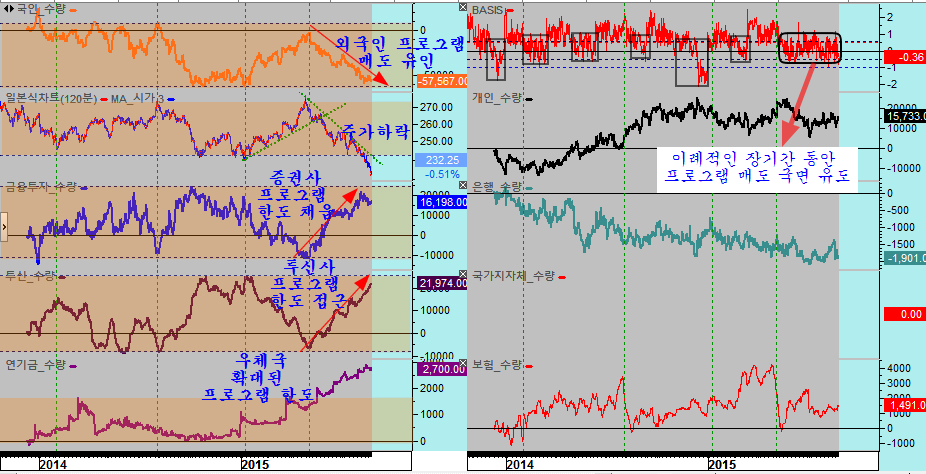특히, 대형주와 관련해서는 강력한 수급이 대기하고 있다. 대개 1~2개월에 걸쳐 매도되었다가 다시 매수하는 프로그램 차익거래는 4월 이후 지금까지 4개월에 걸쳐 매도 국면이 이어지며 조정기간을 장기화 하는 이유가 되어 있다.