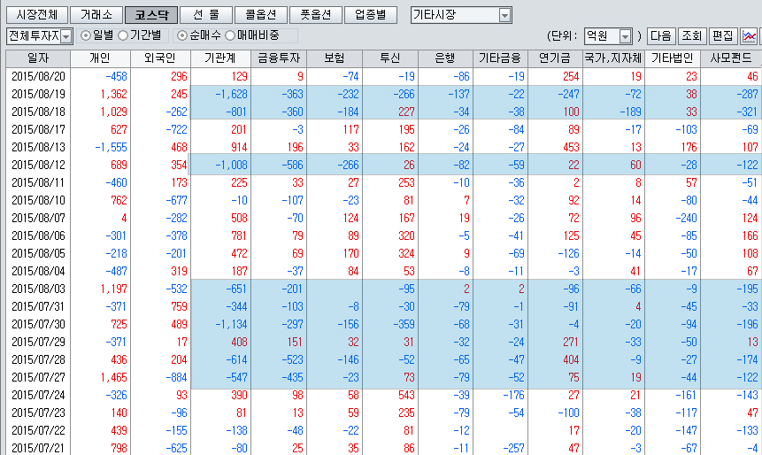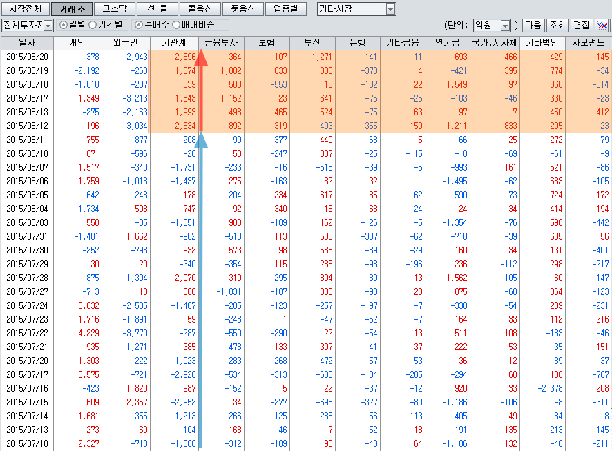 기관의 매매 전략 변화와 장세의 변화
