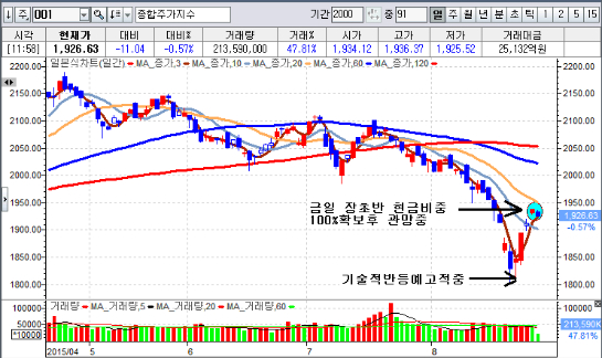 코스피지수 1800P 코스닥지수 610P 전후는 기술적반등을 노리는 매수구간이라고 했으며