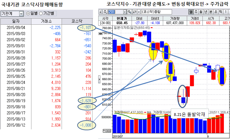 이해를 할수 있는 부분이지만 최근 급락은 기관의 일시적인 대량순매도가 만들어내고 있는 변동성