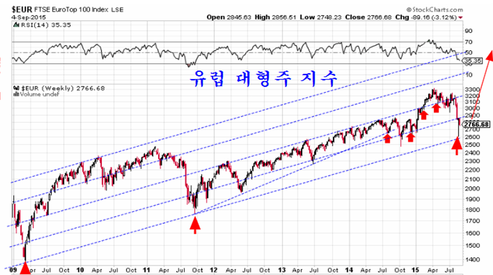유럽 대형주 지수도 지난 8월 추세 채널의 하단을 찍고 반등함으로써 조정 국면을 끝내고 상승을 준비하고 있다. 유럽 시장 역시 급성장한 유럽 파생상품 시장의 영향으로 만기전 변동이 심하게 나타나지만 이런 일시적 변동과정과 무관하게 장기 추세는 지난 8월을 저점으로 장기 상승하는 국면이 될 것으로 판단한다.