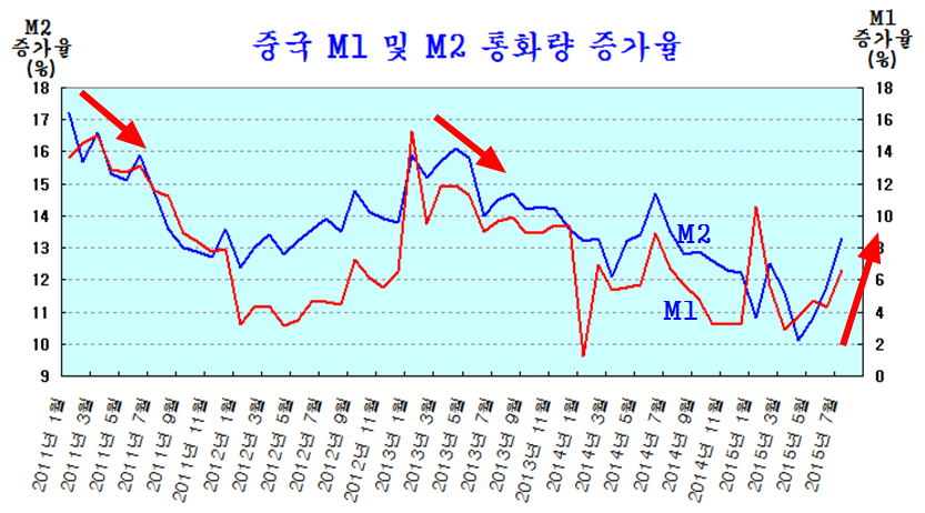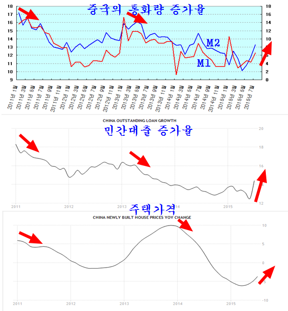 중국 역시 다르지 않다. 2011년 부동산 가격을 잡느라 시중의 통화를 줄였던 중국은 작년 말부터 부동산 경기를 살리는데 모든 노력을 쏟으며 경기 부양책을 하루가 멀다 하고 내놓고 있다. 이 결과 바닥까지 추락하며 경기 위축의 원인이 되었던 통화가 급격히 증가세로 바뀌고 있다.