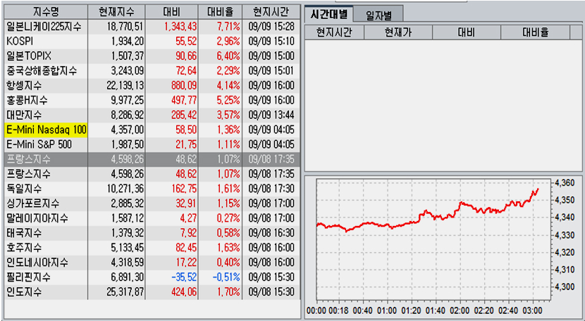 일본 증시가 강세를 보이며 촉발된 아시아 시장의 상승은 후반으로 갈수록 강해져 종합주가지수는 55.52포인트 2.96% 상승으로 마감하였다. 니케이 지수는 21년래 최대 상승폭인 7.71% 상승을 하였고, 항셍지수 4.14%. 대만 니케이 지수 3.57%, 중국 상해 종합지수 2.29%의 상승을 나타냈다.