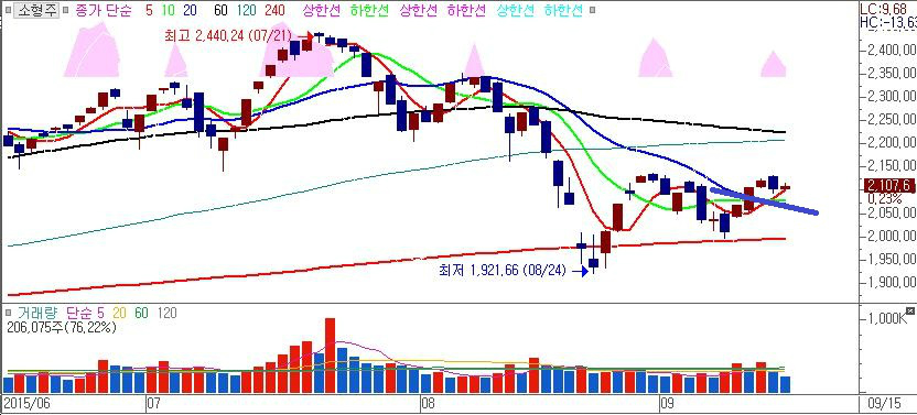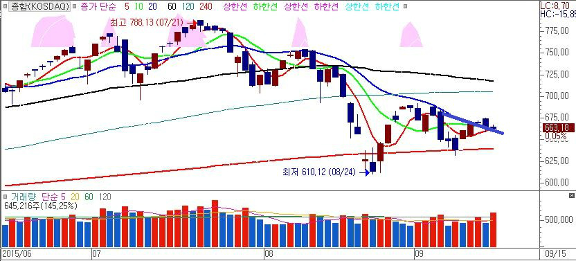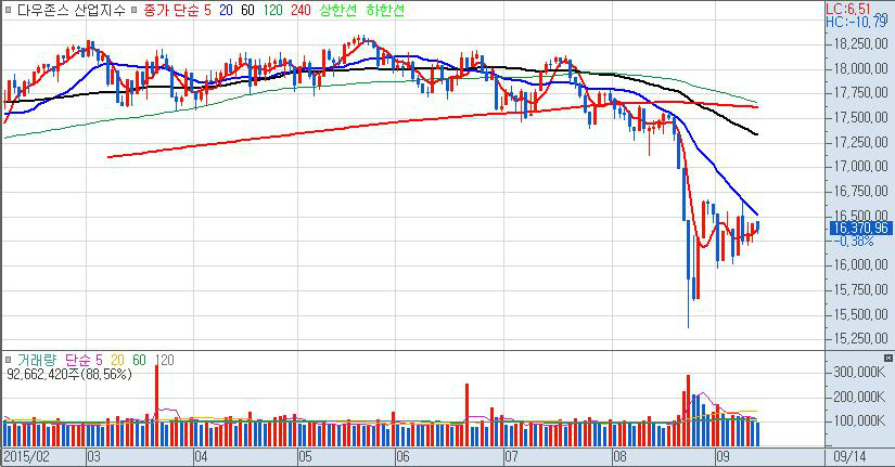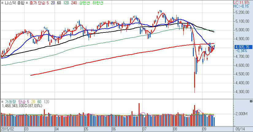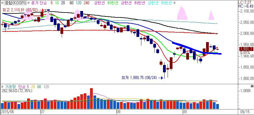 최근의 차트흐름만으로 판단한다면 이미 투자자들은 8월의 급락이 미 금리인상의 선반영으로 마무리 되었다고 판단하고 있다고 봐야 하며 선반영이 되었다면