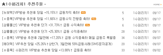 31년 경력 [수퍼리치]의 급등주 선취매전문 1등방송 추천종목들>>> 보러가기
