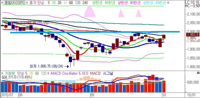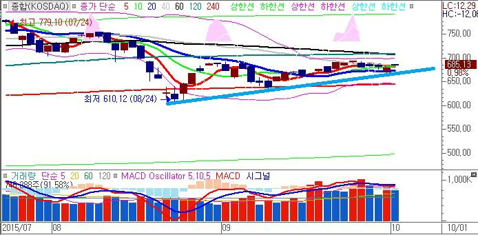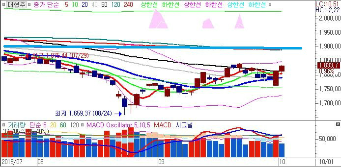 뉴스에서 온갖 악재 뉴스가 터져나와도 어느듯 코스피와 대형주는 돌파선을 앞두고 있고 코스닥과 소형주는 지지선을 지켜가고 있다