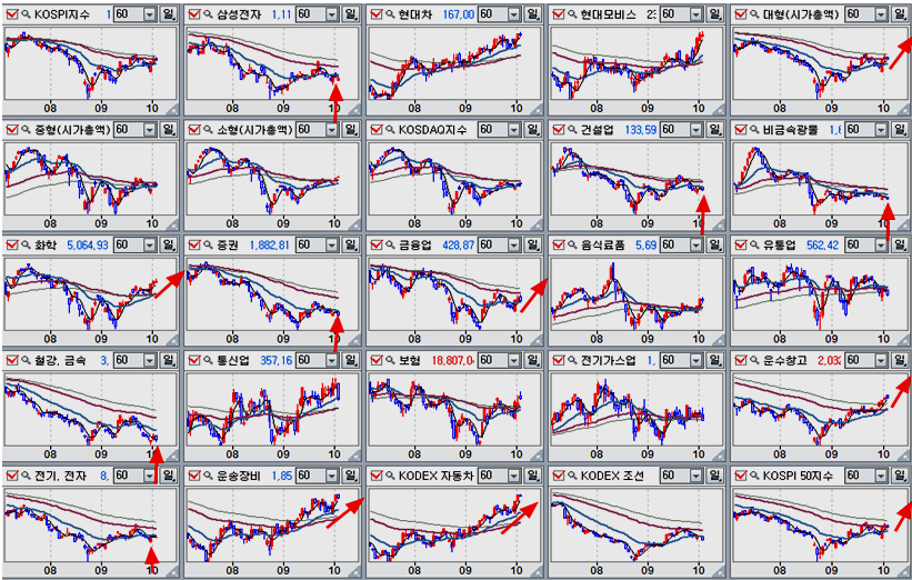 반도체 회복과 함께 전기전자와 부품주, 내구소비재 회복과 함께 자동차와 부품주, 스프레드 호조와 함께 화학주, 건설기성 2년 최고 증가세와 함께 건축자재와 건설주, 중국 PMI 지수 회복과 함께 철강, 화학, 운수, 자동차, 기계, 중공업, 그리고 이들 업종의 상승과 함께 증권업종의 상승이 유망하다.