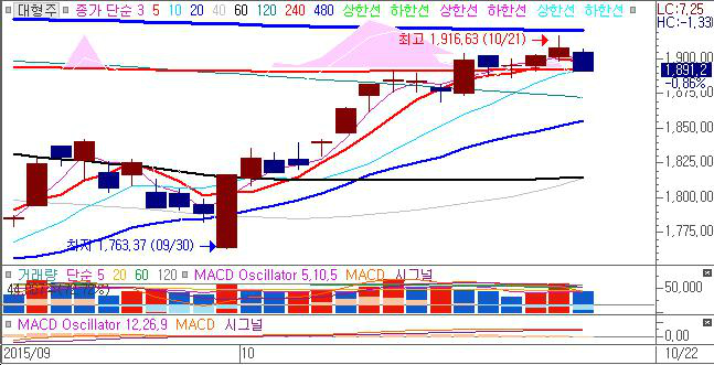 240일선 돌파후 마지막 저항선 480일선을 앞두고 조정파동