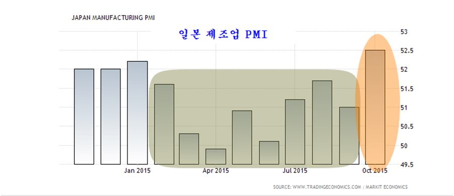 올들어 연초부터 지속 침체를 보였던 일본을 비롯한 각국의 제조업 PMI 지수도 10월 들어 이전과 확연히 다른 성장의 모습으로 나타나고 있다.