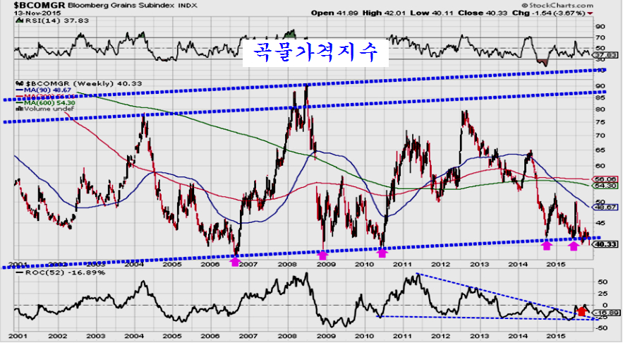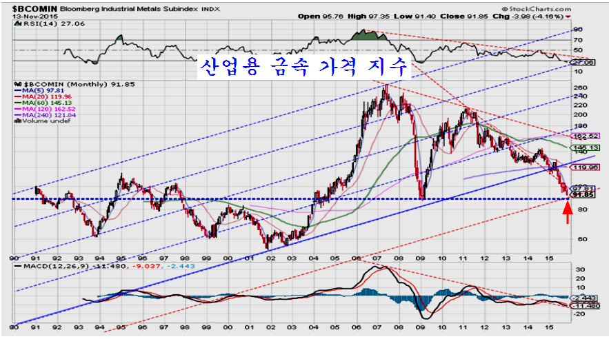 상품지수를 비롯한 원유, 금, 곡물, 산업용 금속이 모두 대세 저점권에 진입하면서 이들 업종의 추세 반전이 목전에 있는 것으로 보인다.