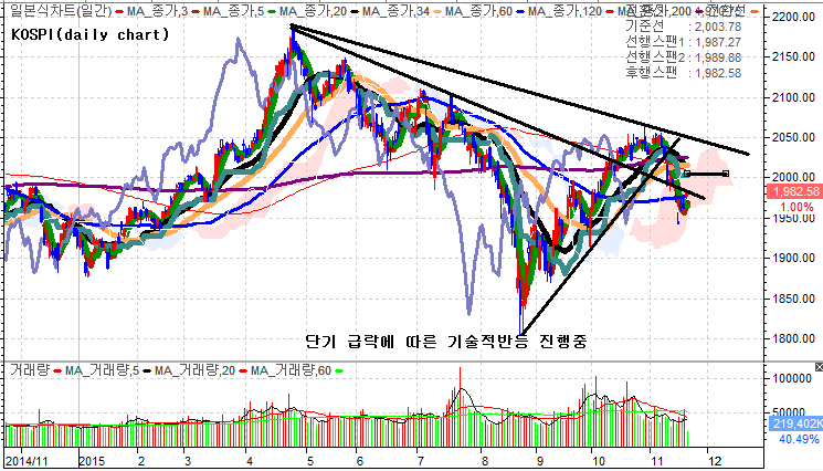 코스피지수 단기 낙폭과다에 따른 이격 좁히기 과정으로 기술적반등이 이어지고 있다. 그러나 지금의 흐름은 기술적반등 이상의 의미를 부여하기는 어려워 보이며 반등이후 코스피지수는 재차 저점 확인 수순을 밟을것으로 예상된다.