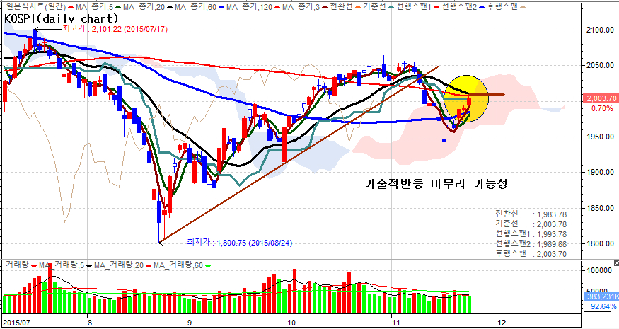 코스피지수도 아직까지는 반등 이상의 의미를 부여하기는 어렵다 (아래 차트 참조)
