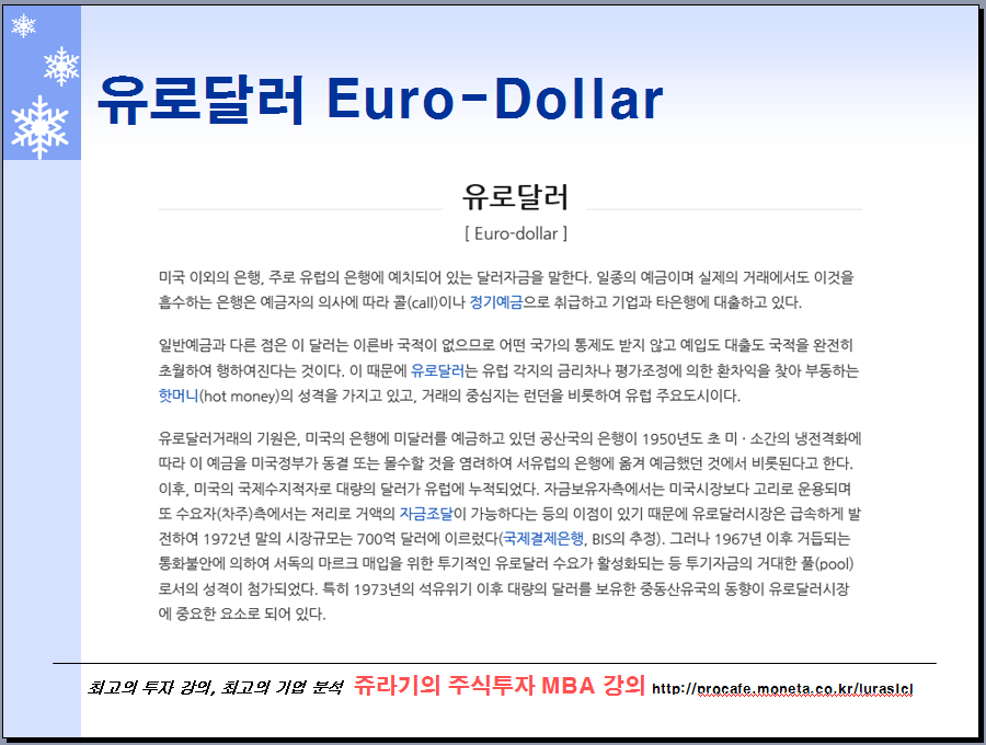 쥬라기: 유로달러는 유럽의 은행에 예치된 달러예금으로