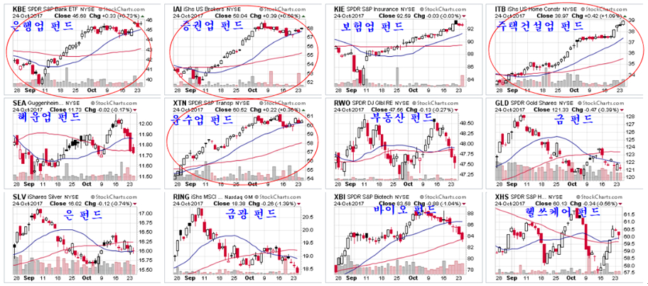 뉴욕 시장의 상승은 여전히 주택건설업이 시장을 리드하고 있다. 주택건설업의 강세 속에 주택건설과 밀접한 영향을 갖는 은행과 증권이 함께 오르고 있고, 철강과 소재, 산업재 등이 동반 상승하고 있다.