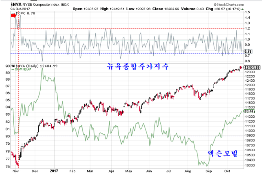 10월 조정을 보였던 미국 증시는 월말 엑슨모빌과 함께 상승 추세가 계속되고 있다.