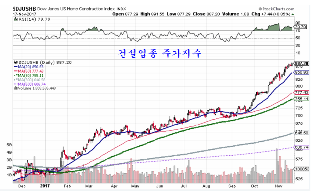 미국의 경우는 여전히 건설업종이 업종 TOP을 유지하면 시장을 선도하고 있다.