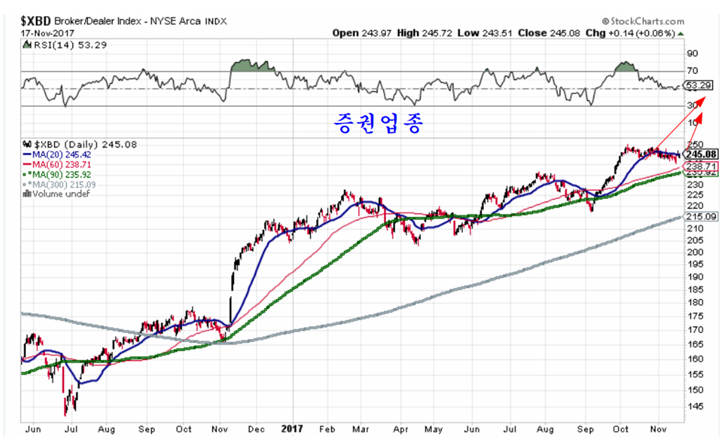 10월 이후 지수 조정과 함께 특히 경기 민감주인 금융, 금속, 운수, 기계, 기초소재 등 주로 경기주의 조정이 나타났다. 따라서 조정을 마무리한 이들 업종이 이후 상승에서 파생상품 만기의 변동을 회복하며 상승 추세를 시작할 가능성이 높다.