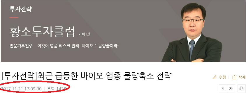 전일 투자전략방에 [최근 급등한 바이오업종 물량축소] 전략이란 제목으로 물량축소전략에 관련하여 올려드렸다.