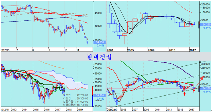 그러나, 줄기차게 쏟아지던 기관의 현대건설 매도 물량이 바닥을 드러내 보임으로써 향후 건설이 오르게 될 때 강한 상승을 할 조건이 되어 있다. 건설업은 재무구족 개선과 실적 개선 및 주가 수익비율에 기준한 가치 저평가 척도로 볼 때 전체 업종 중 가장 저평가이며 가장 상승 여력이 큰 업종이다.