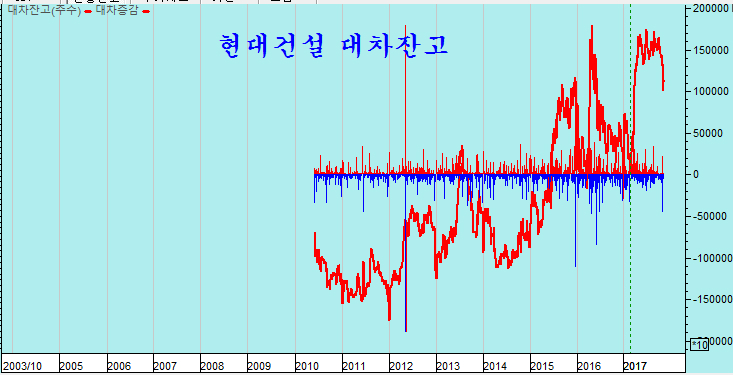 그럼에도 불구하고 무슨 이유인지 기관이 업종 대표기업인 현대건설에 대한 매도 물량을 쏟아놓으면서 업종지수의 상승이 지연되며 주가가 정체하는 모습이 이어졌다. 특히 올 들어 국가지자체가 ETF와 보유 주식을 교체하는 차익거래로 현대건설 매물을 쏟아낸 데다가 그간 줄곧 매도해왔던 투신과 증권 등의 매도 물량이 소진되면서 건설주 장기 정체가 마무리될 조건이 되어 있다.