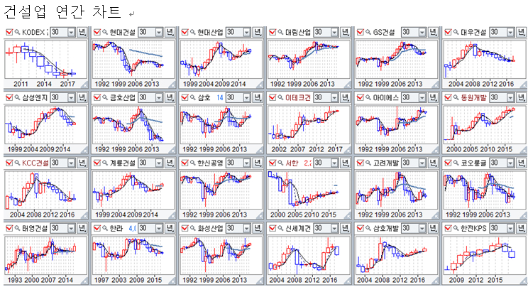 사실 대형 및 중견건설업체들은 재무구조가 개선되면서 매출액 대비 이익률이 증가하고, 매출액 증가와 함께 이익이 늘면서 주가 상승 여력이 매우 커졌지만 주가는 저평가 상태에 머물고 있다. 기관이 업종 대표주인 현대건설에 대한 매물을 쏟아놓으면서 업종지수와 업종펀드와 업종 선물이 상승하지 못했기 때문이다.