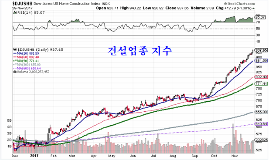 이와 함께 17년 세계 부동산 경기의 최고 주도주인 건설업종의 움직임은 대단한 상승세를 유지하고 있다.