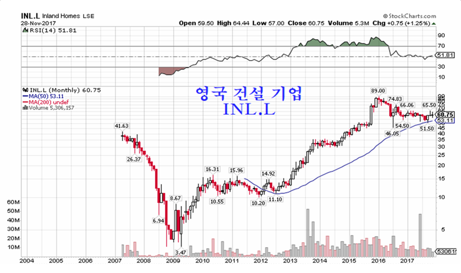 사실 17년 주기로 움직이는 건설업은 그 가격 변동이 대단히 탄력적이다. 이들은 세계 부도산 주기에 따라 업황이 호전되며, 업계내의 경쟁력에 따라 주가가 앞서 상승한다. 그 장기적인 상승의 폭은 여타 업종에서 보는 것과는 차원이 다르다.