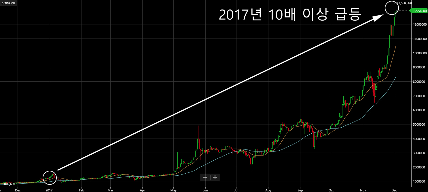 2017년에 개인 투자자들 자금만으로 10배 급등한 비트코인이