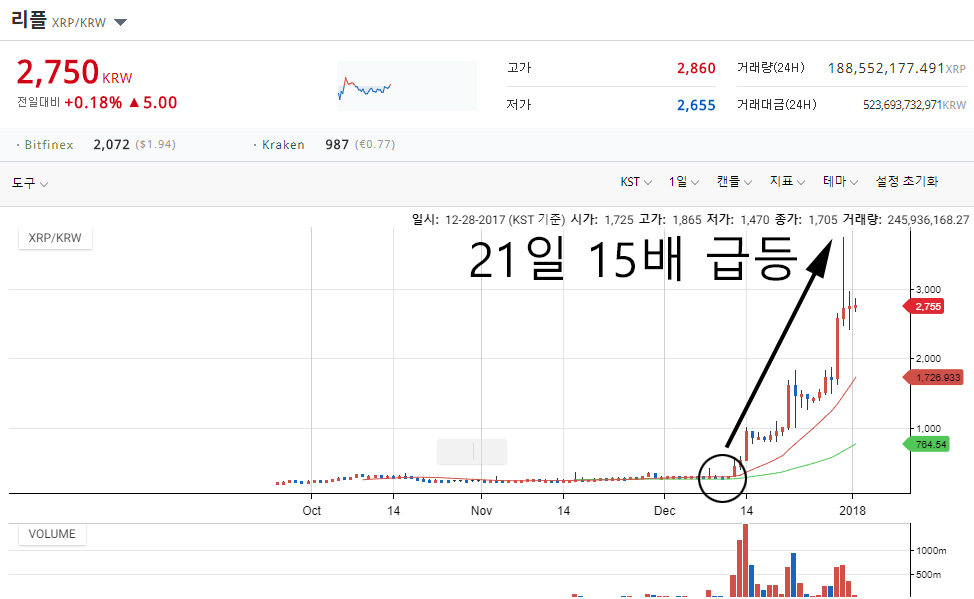 주춤했던 리플이 급등 하면서 이더리움마저 제치고 시가총액 2위를 차지했고,