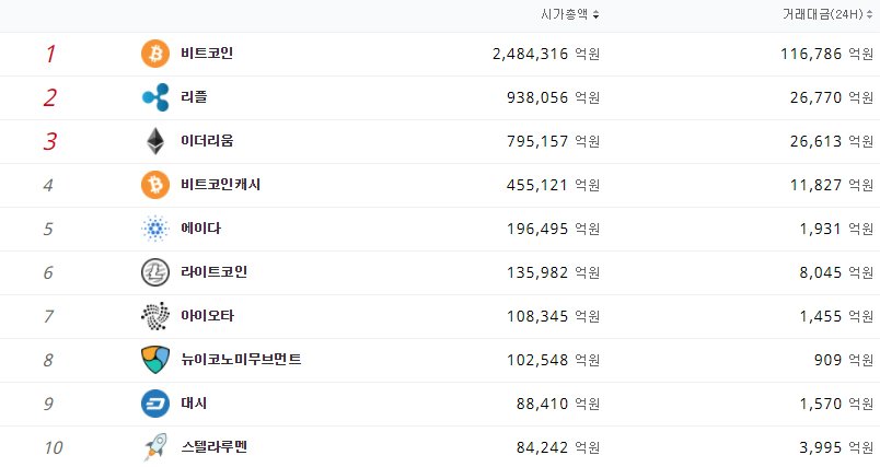 비트코인이 시가총액 1위를 계속해서 유지하는 가운데