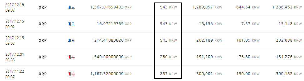 < 리플 (XRP) / 실매매내역 >