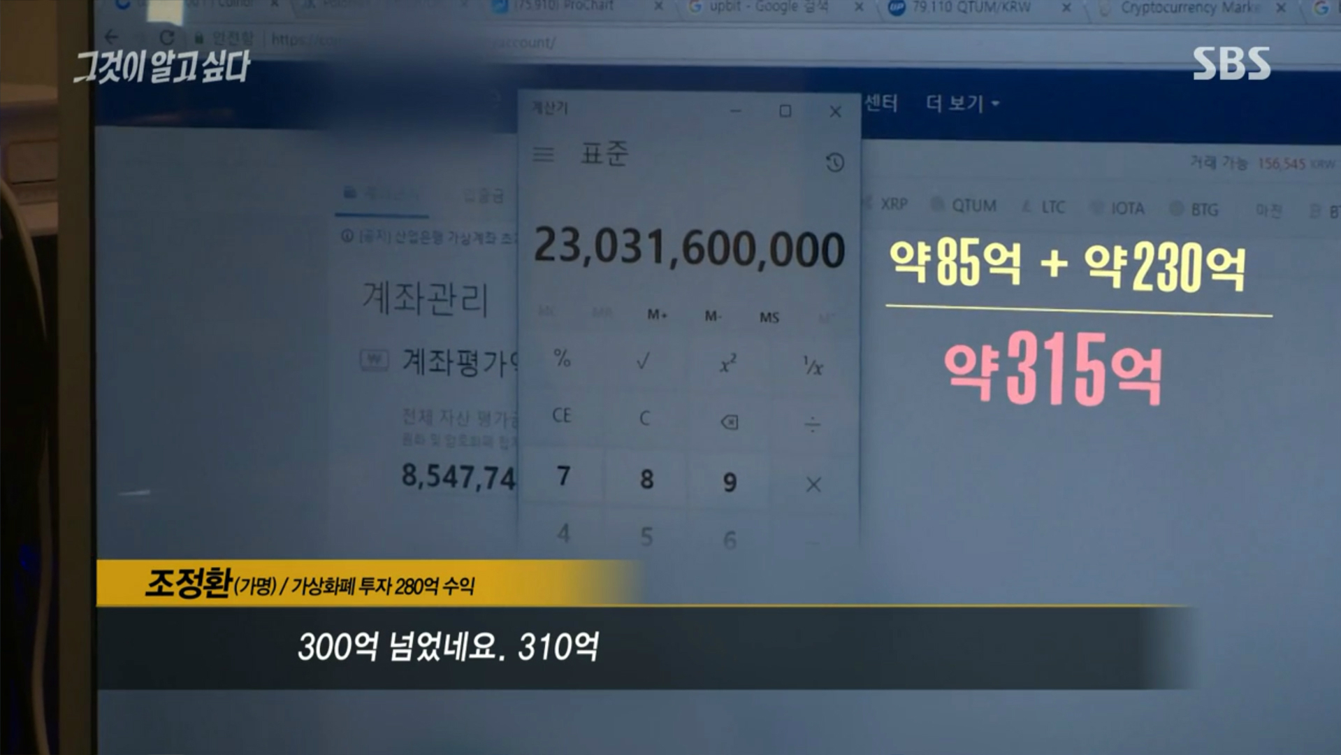 인터뷰 하는 2시간동안 비트코인 가격이 상승해서 자산이 310억이 됩니다