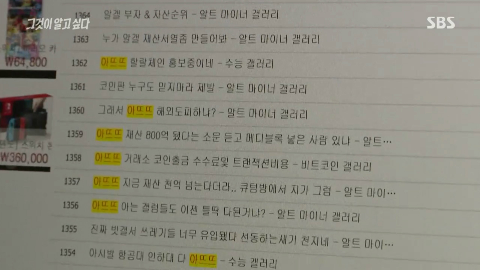 2018년 1월 6일 토요일 그것이 알고싶다에서 새해 첫 방송으로 비트코인을 다뤘습니다