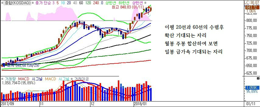이로인해 코스닥 흐름이 상승 가속을 밟을 시기로 보여집니다