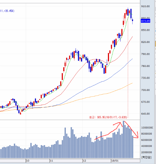 통상 셀트리온에서 1조정도 터지던 거래대금이 30%정도 감소한 것을 비롯하여