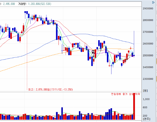 오늘 매수하신 분들은 삼성전자가격이 8%상승한후 보합으로 되밀려서 모두 물렸다.