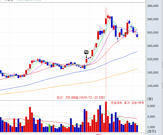 셀트리온이 여전히 높은 가격에 머물러 있다.