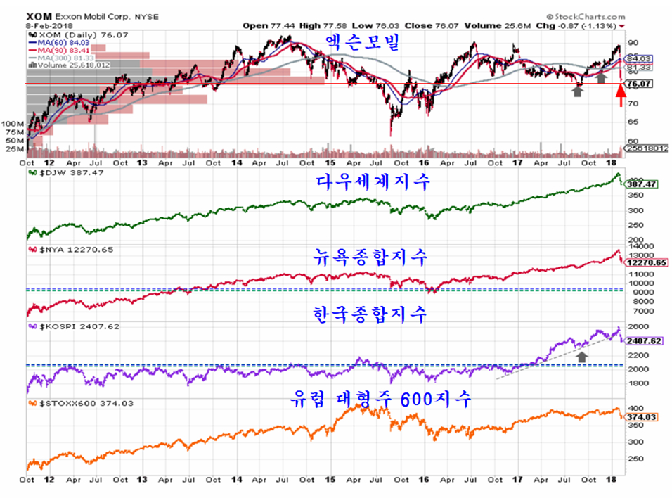 뉴욕시장의 엑슨모빌이나 나스닥 시장의 애플을 조정하여 지수의 하락을 만들면 이 영향으로 유럽을 비롯한 세계 증시의 조정이 나타나 글로벌 메이저들은 손쉽게 세계 증시 전체의 조정을 유인할 수 있어 이로부터 이익을 얻을 수 있다.