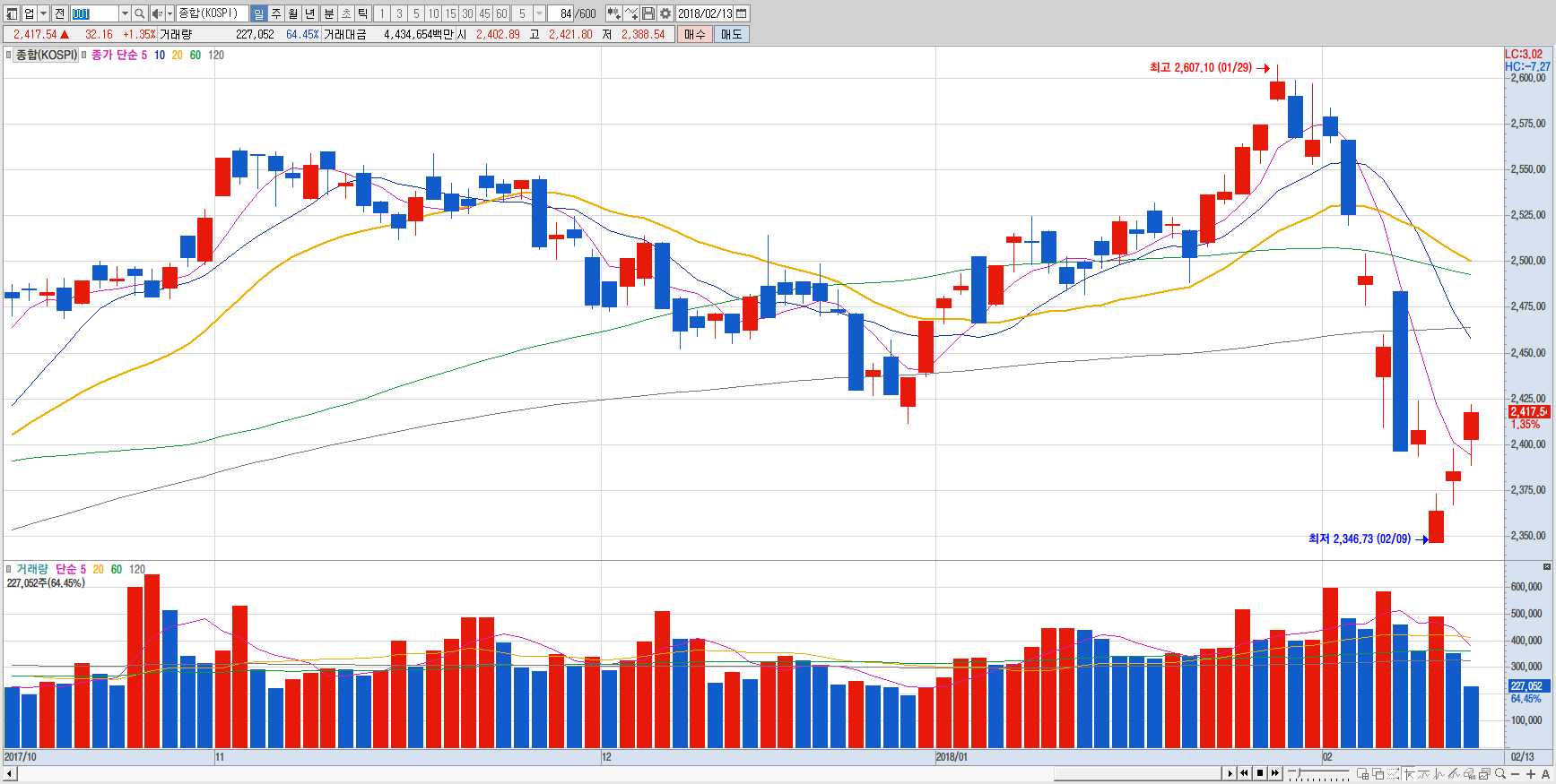 단기 저점부근인 2,350선을 기점으로 조금씩 제 자리를 찾아가는 과정에 있습니다.