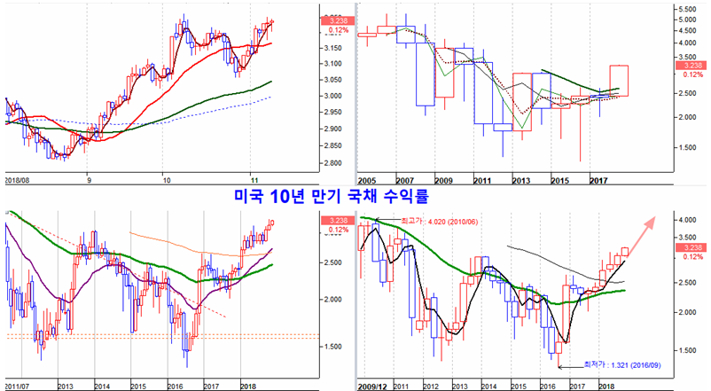 미국의 중간선거도 상원과 하원을 양당이 각각 점하면서 크게 악화된 상황도 아니었고, FRB가 기준금리를 동결하였으며, 기술적으로 채권가격이 최저 바닥권에 있어 매수 수요가 늘어날 법 한데도 국채 매수 수요는 기대 이상으로 미약한 결과이다.