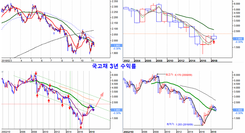 아울러 국채가격이 추세를 돌파하여 새로운 추세를 지속하게 된다면, 그간 국채 가격이 바닥인줄 알고 국채를 늘렸던 국내 연기금을 포함한 세계 자산운용주체들은 채권을 줄여 위험자산을 늘릴 환경이 될 것이다.