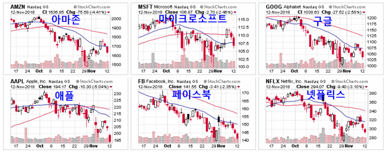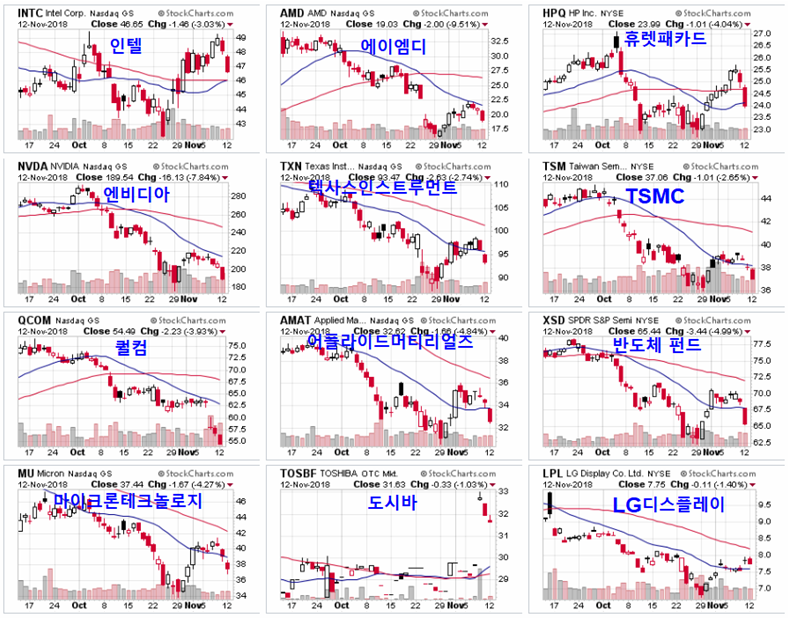 기술주는 2009년 이후 기술주 성장을 이끌어 온 스마트폰 시장이 구형폰의 교체 마무리와 스마트폰 교체 주기가 길어지면서 출하량이 감소하고, 가상화폐의 붐이 꺼지면서 가상화폐 채굴장비 수요의 둔화, 데이터센터 확장 붐의 둔화되면서 D램 가격이 하락으로 전환되는 등 업황 둔화의 신호가 확연해지고 있다.